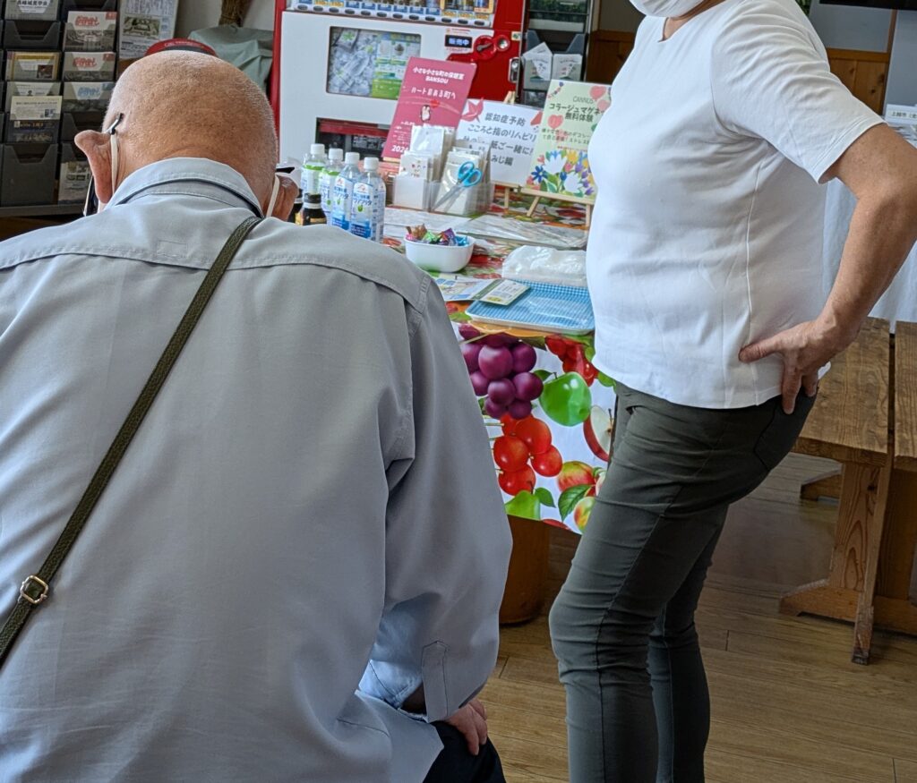 今日も病院勤めのナースが私達に関心を寄せて下さいました。福祉タクシーの社長はいつものように買い物ついでにコーヒーを私達に差し入れそしてエールを下さいます。最近は毎回このような光景です。私達のやりがいと地域の方々、一期一会の観光客、専門職からの暖かさがいい具合に融合しています。