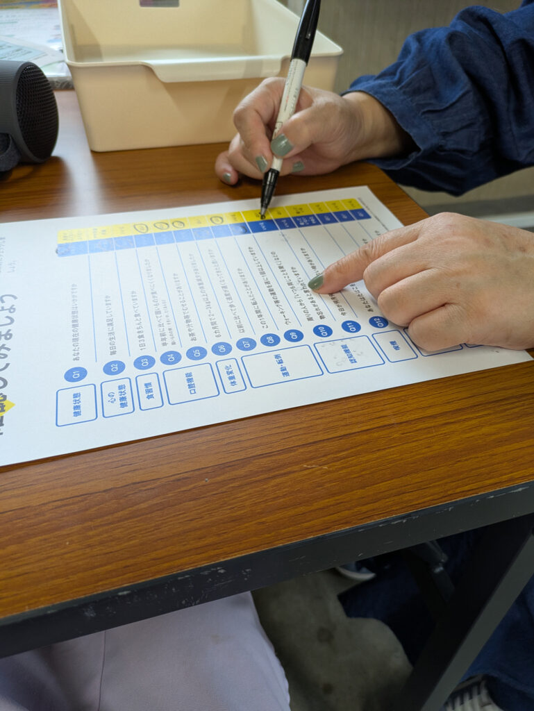 4人の方に行わせて頂きました。簡単なチェックリストを用いてお話を伺うと様々なことがわかります。